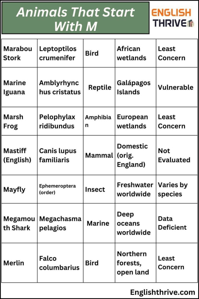| Animal Name | Scientific Name | Type | Habitat | Conservation Status | Fascinating Fact |