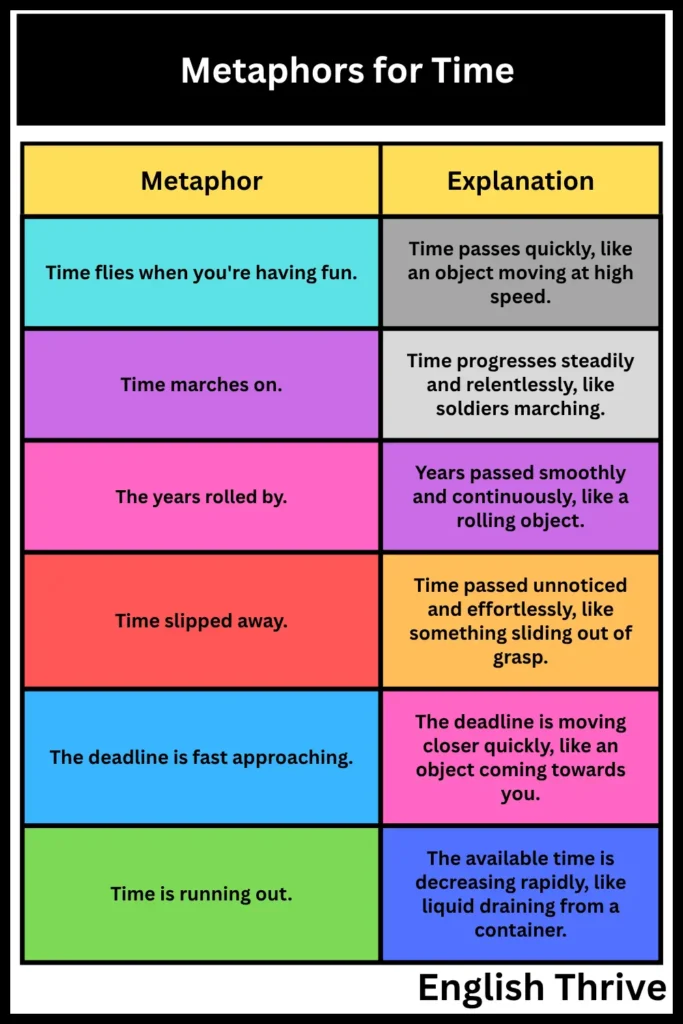 Remember to practice using time metaphors in your own writing and speech, and seek feedback from native speakers to refine your skills. Time, after all, is a valuable resource, and investing it in language learning is always a worthwhile endeavor.